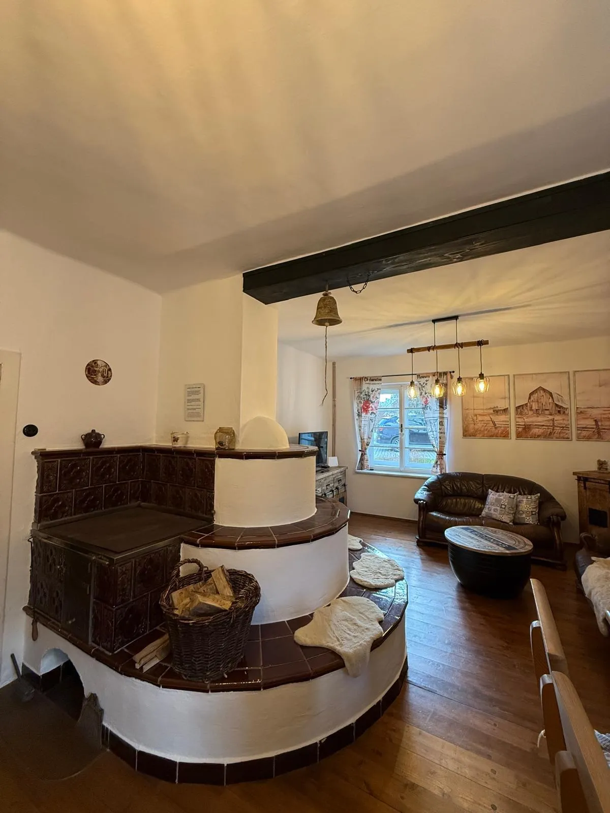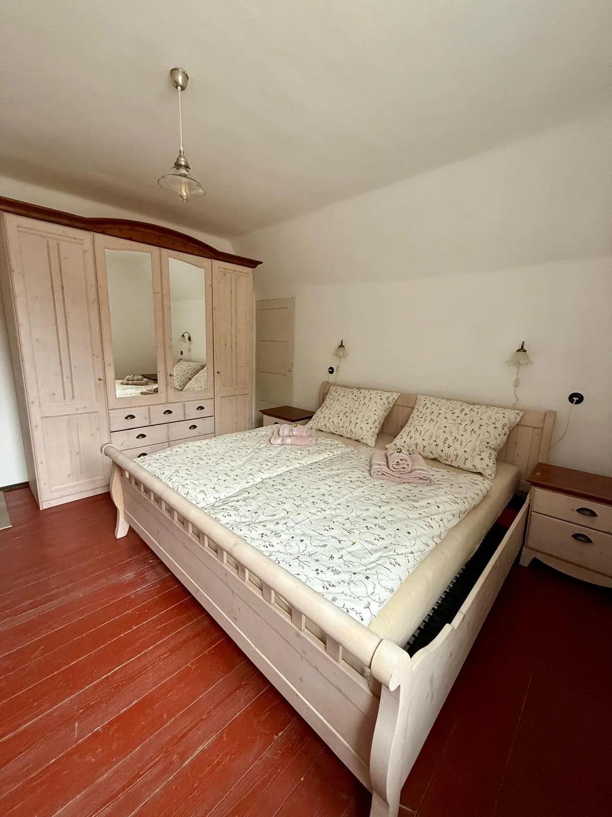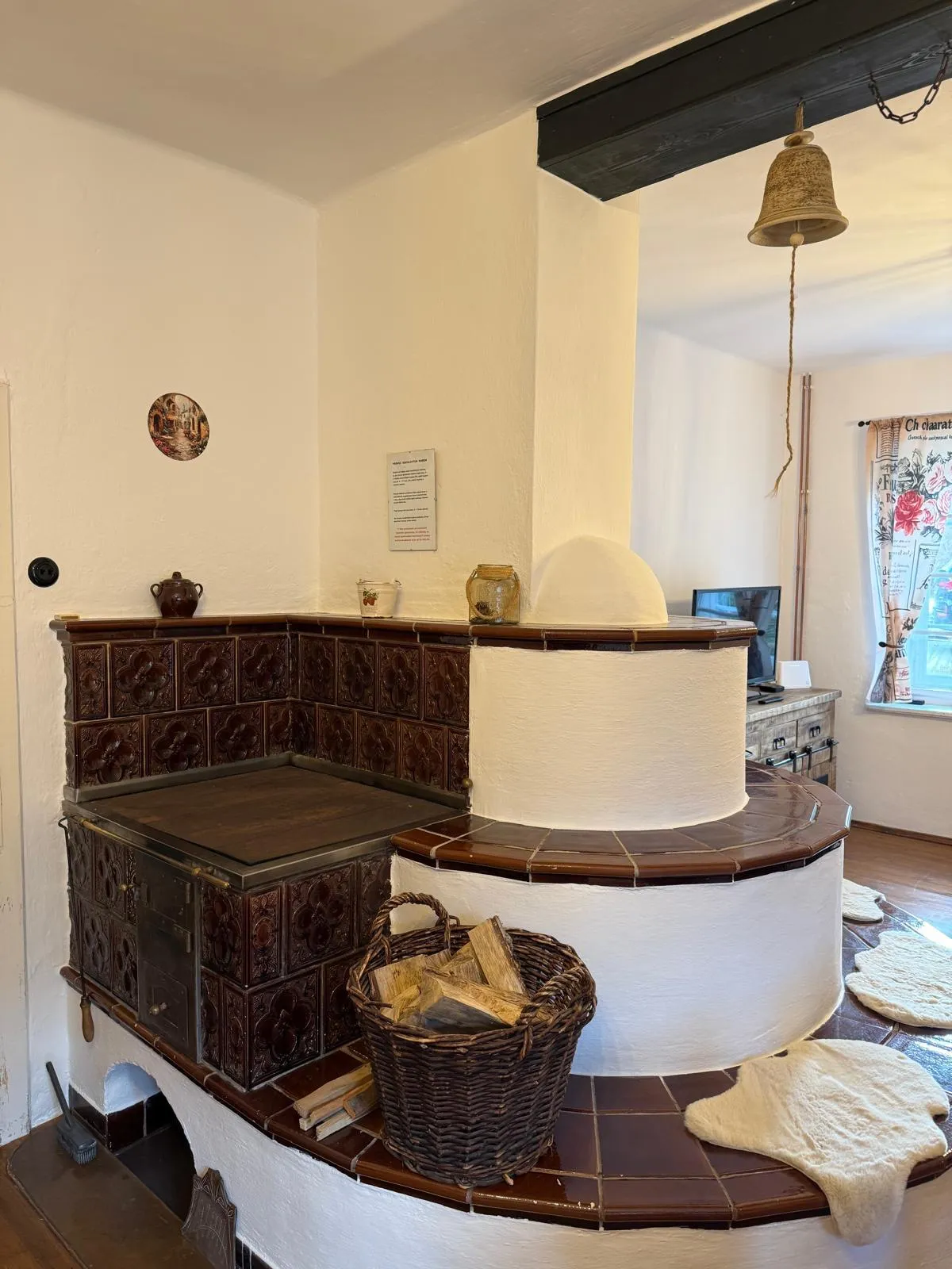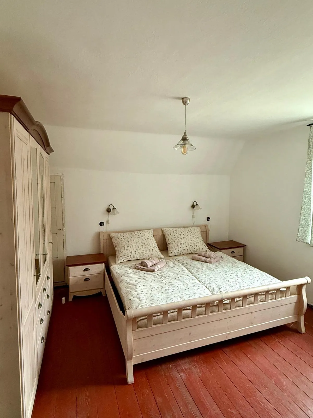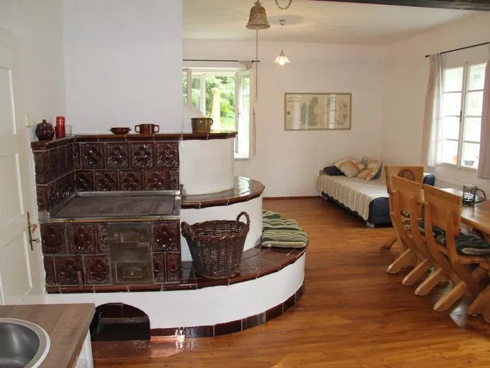 K dispozici je samostatné WC a moderní koupelna se sprchovým koutem. Vytápění je zajištěno centrálně a kachlovými kamny pro dokonalou atmosféru.
