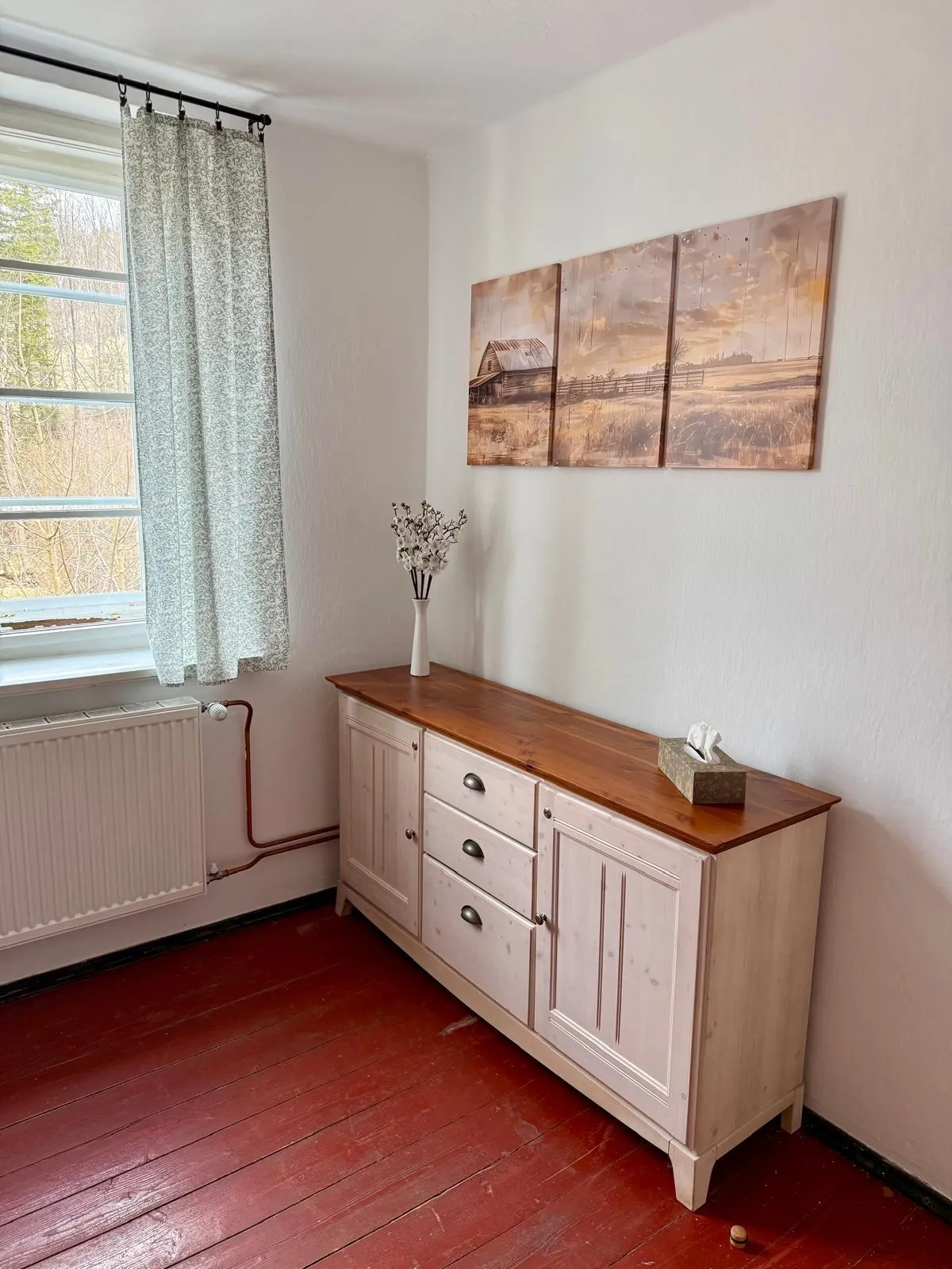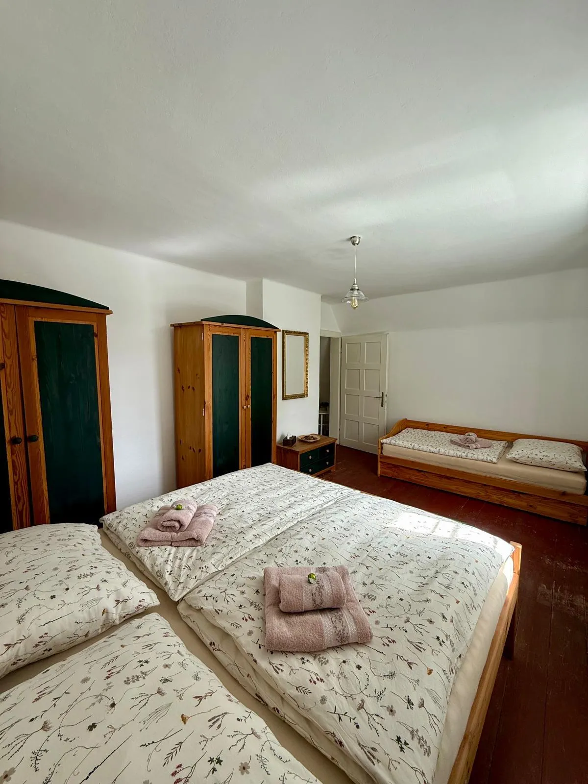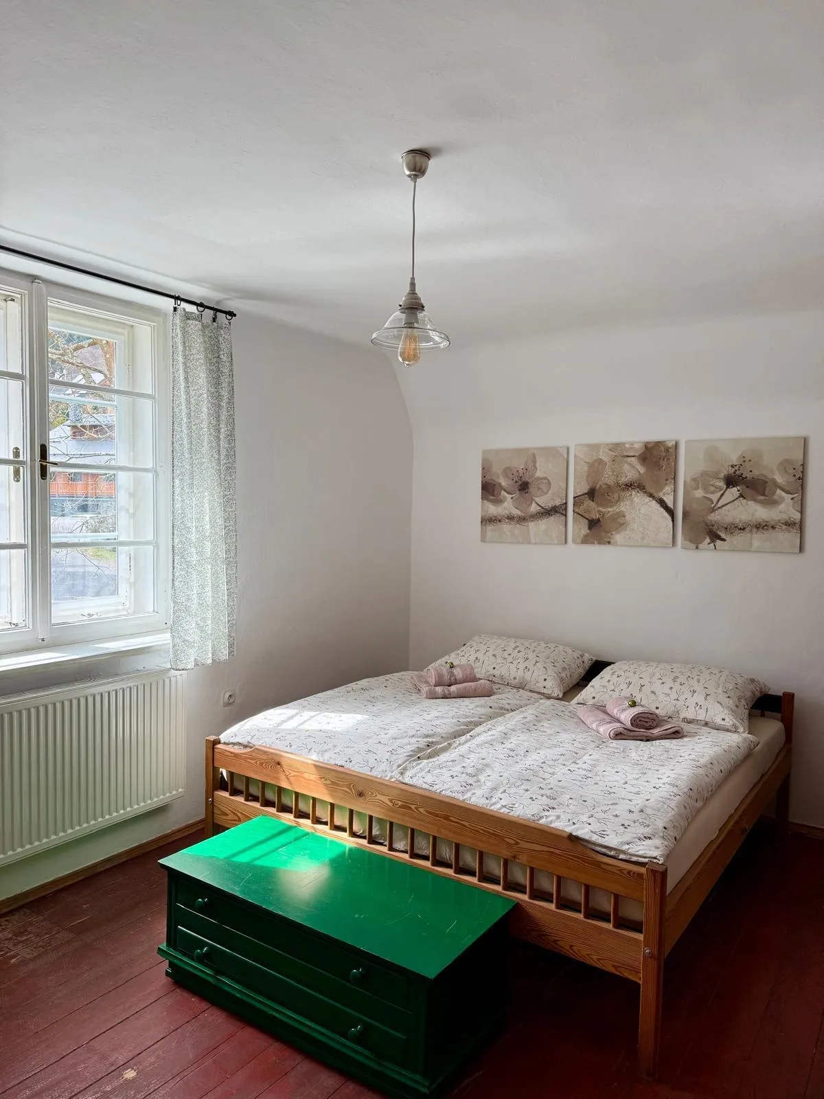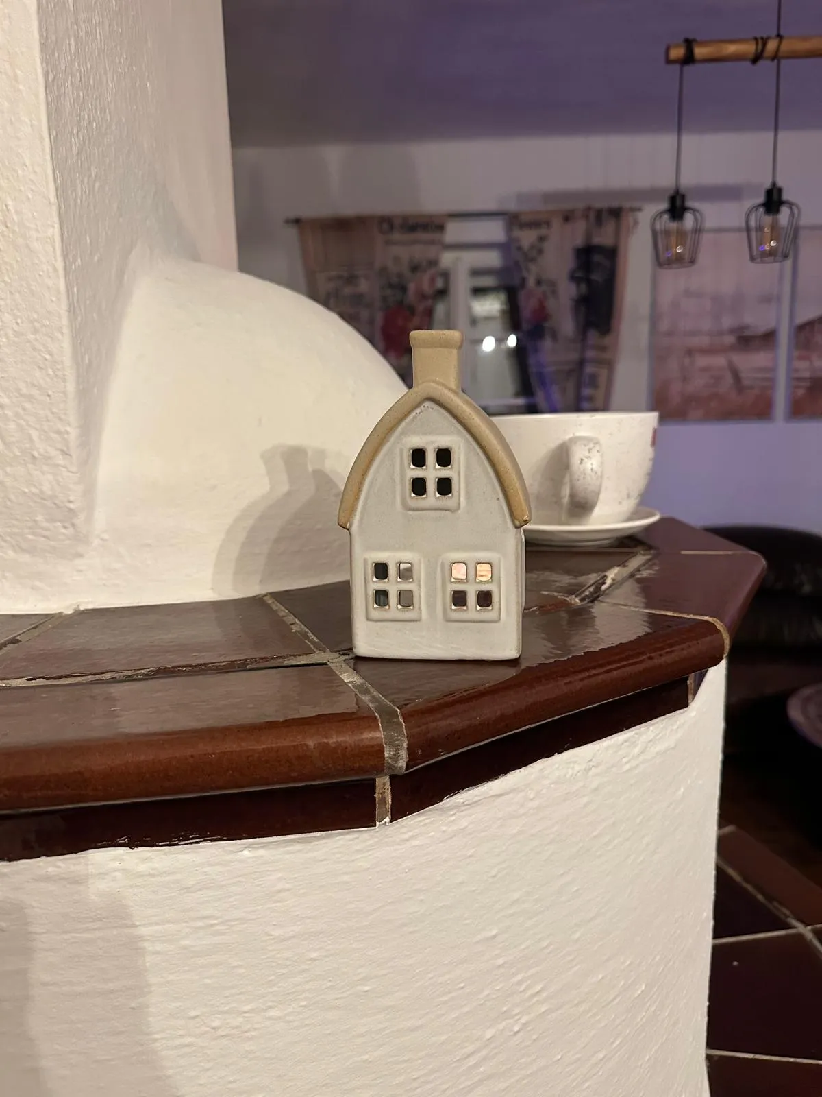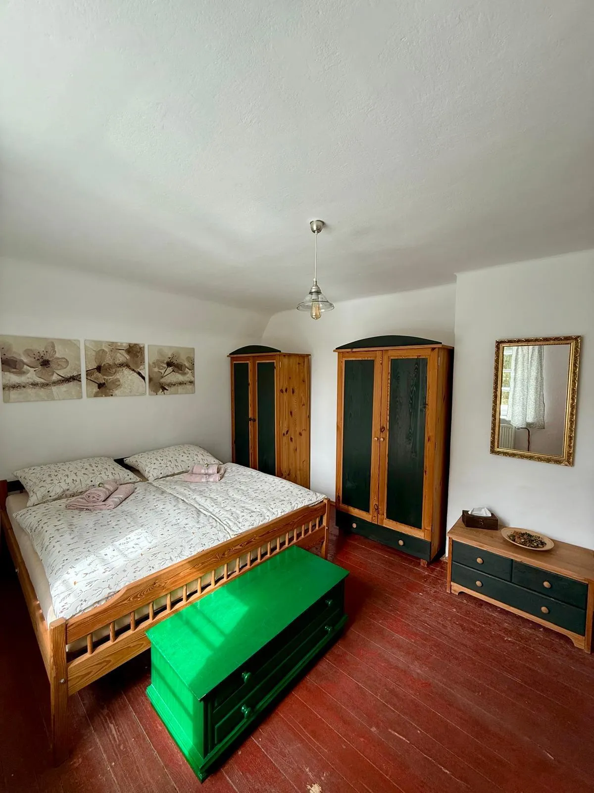 K dispozici je samostatné WC a moderní koupelna se sprchovým koutem. Vytápění je zajištěno centrálně a kachlovými kamny pro dokonalou atmosféru.