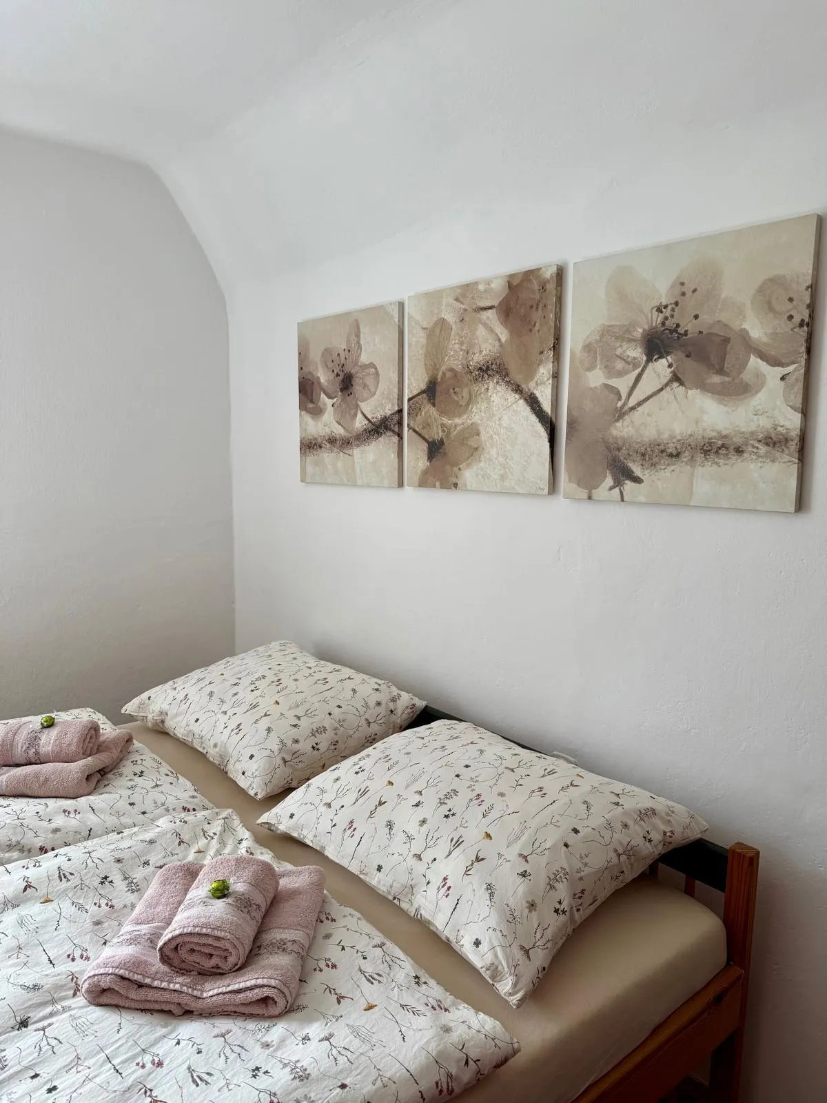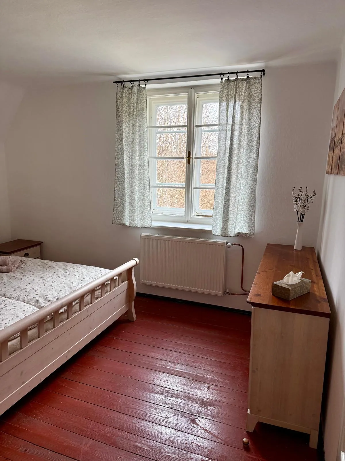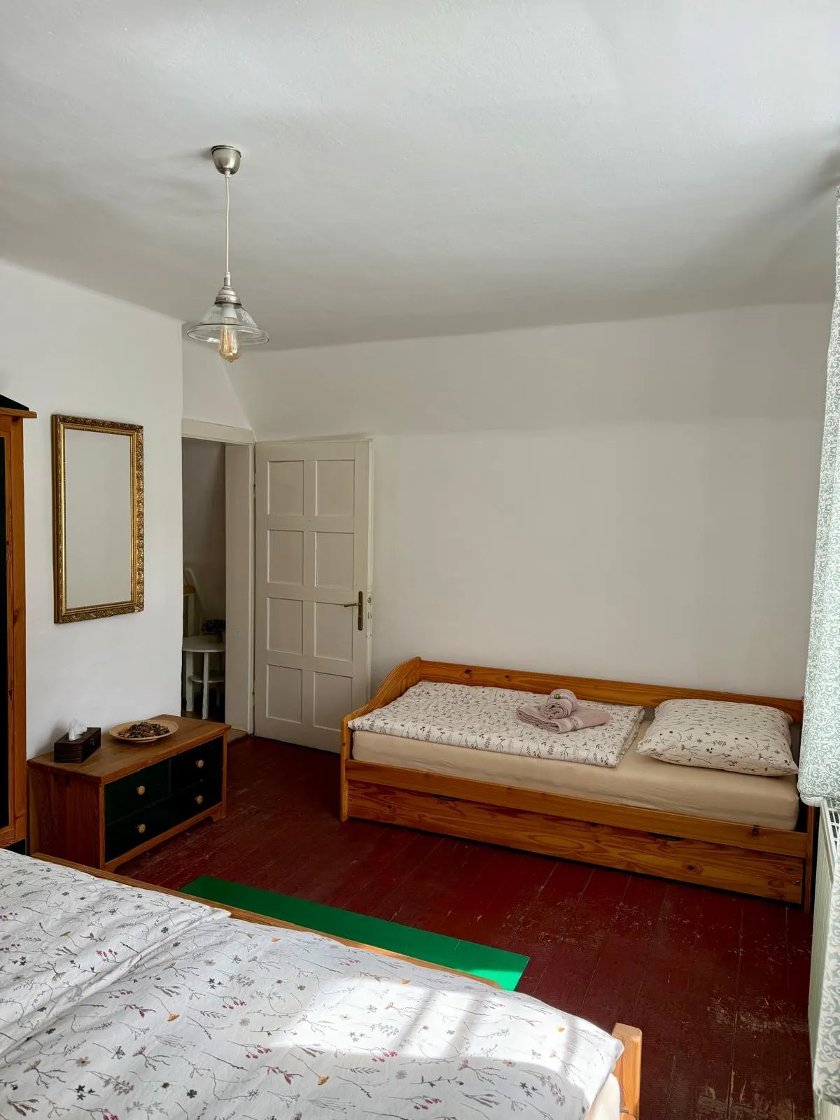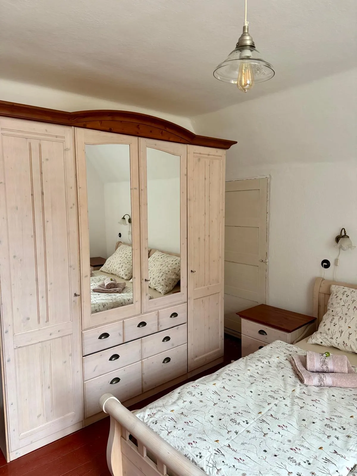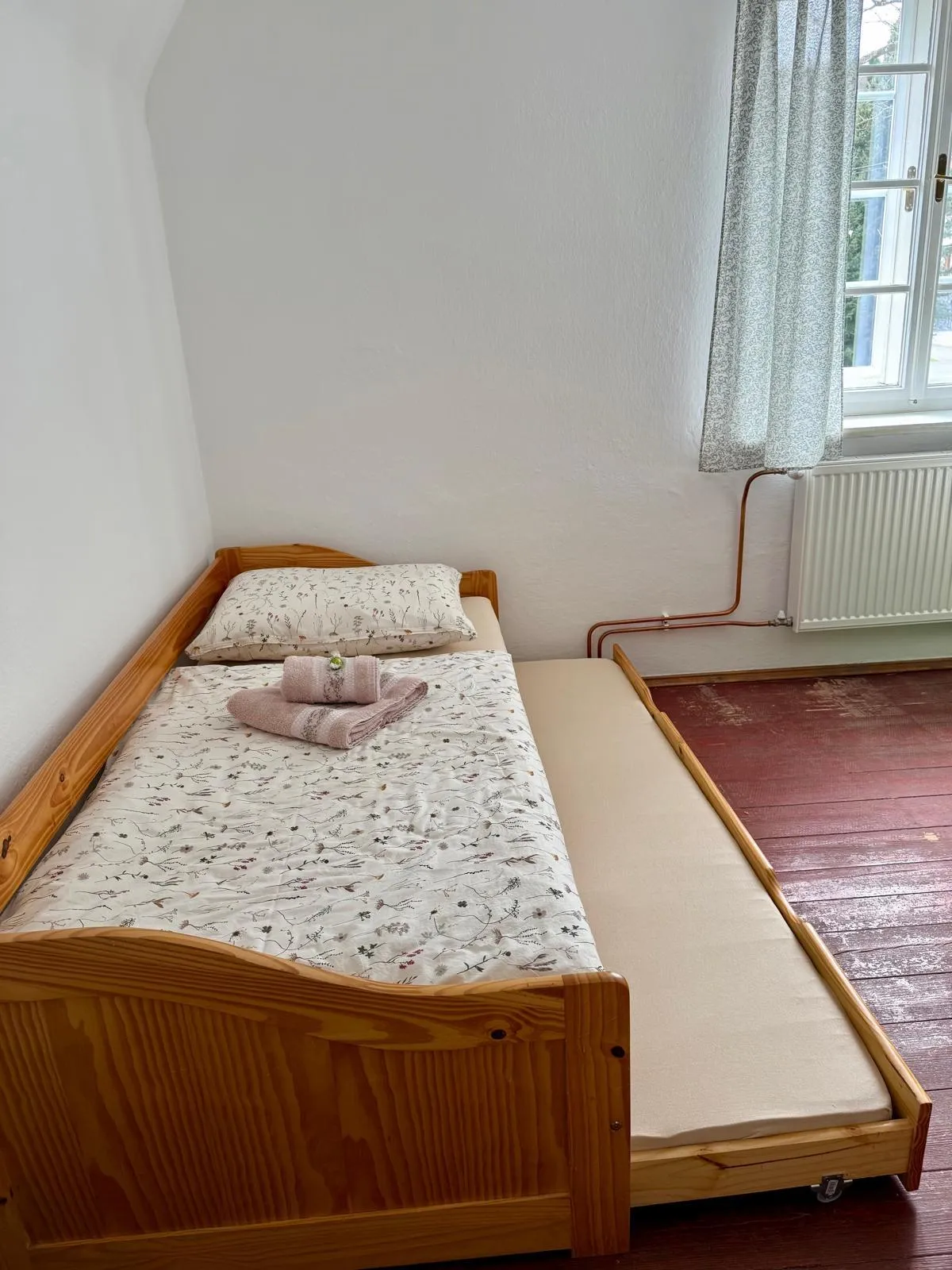 K dispozici je samostatné WC a moderní koupelna se sprchovým koutem. Vytápění je zajištěno centrálně a kachlovými kamny pro dokonalou atmosféru.