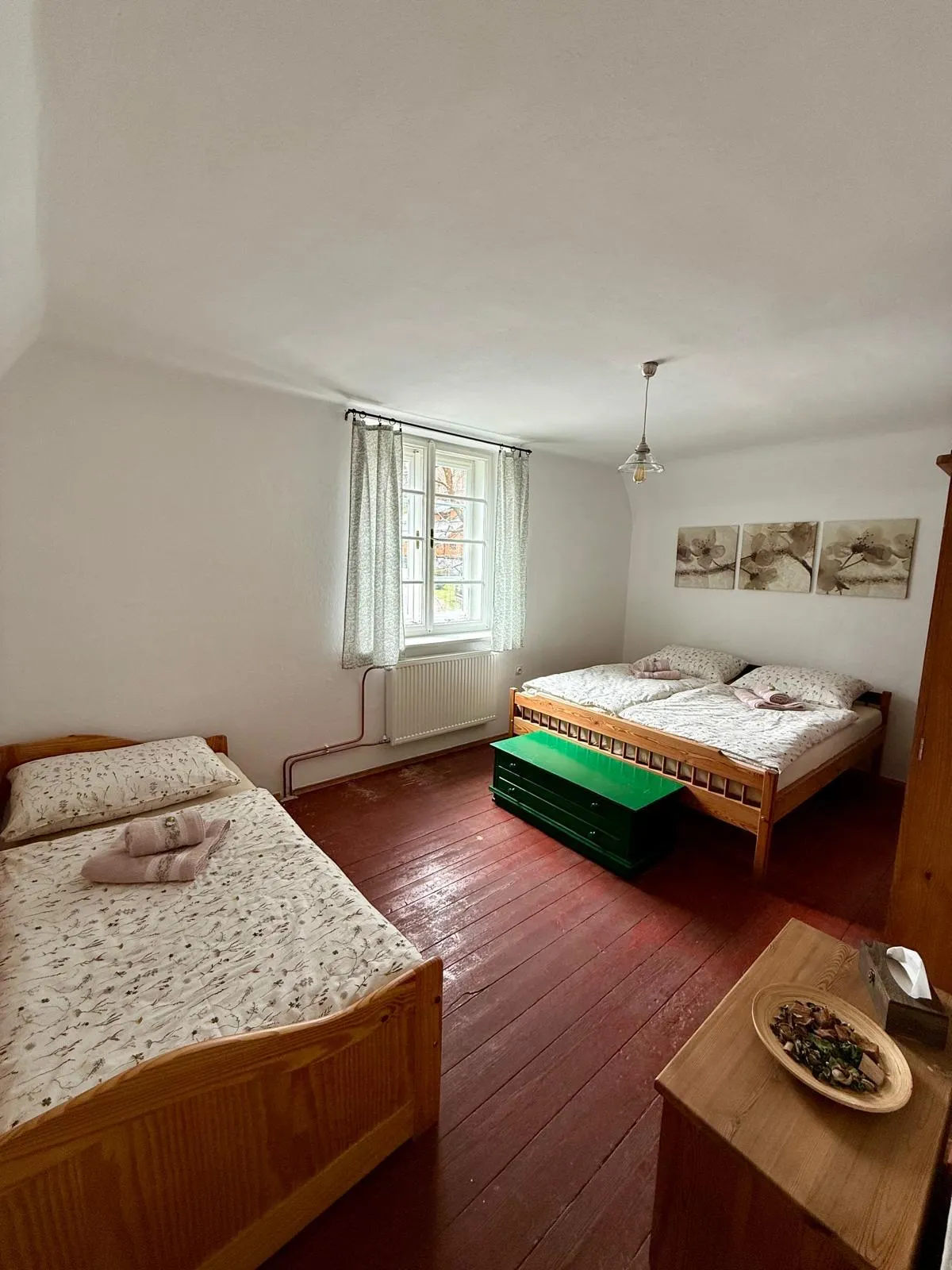 Nachází se na prostorné zahradě, kterou z jedné strany lemuje zurčící řeka Bílá Opava a z druhé chrání plot od silnice. Pozemek je propojen se sousední zahradou, což vytváří jedinečný pocit volnosti a prostoru. U nás najdete dokonalou harmonii mezi tradiční atmosférou a současným pohodlím.