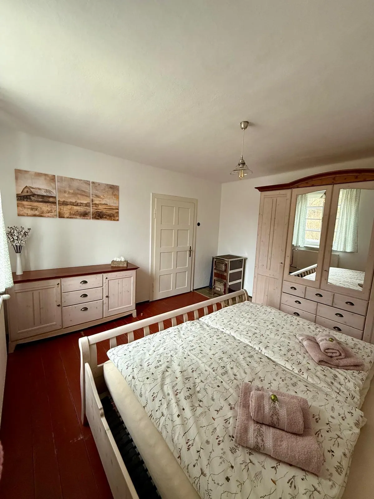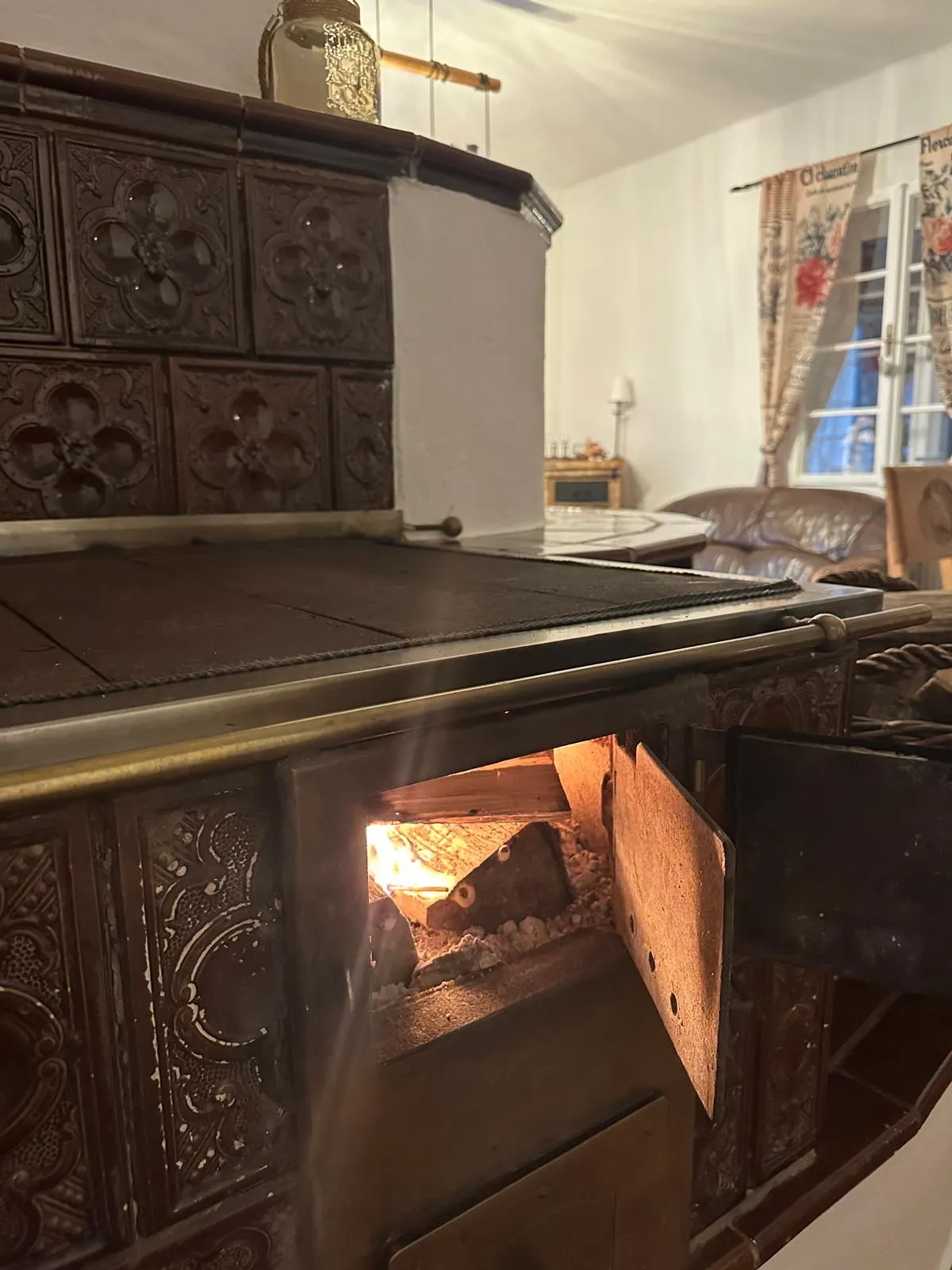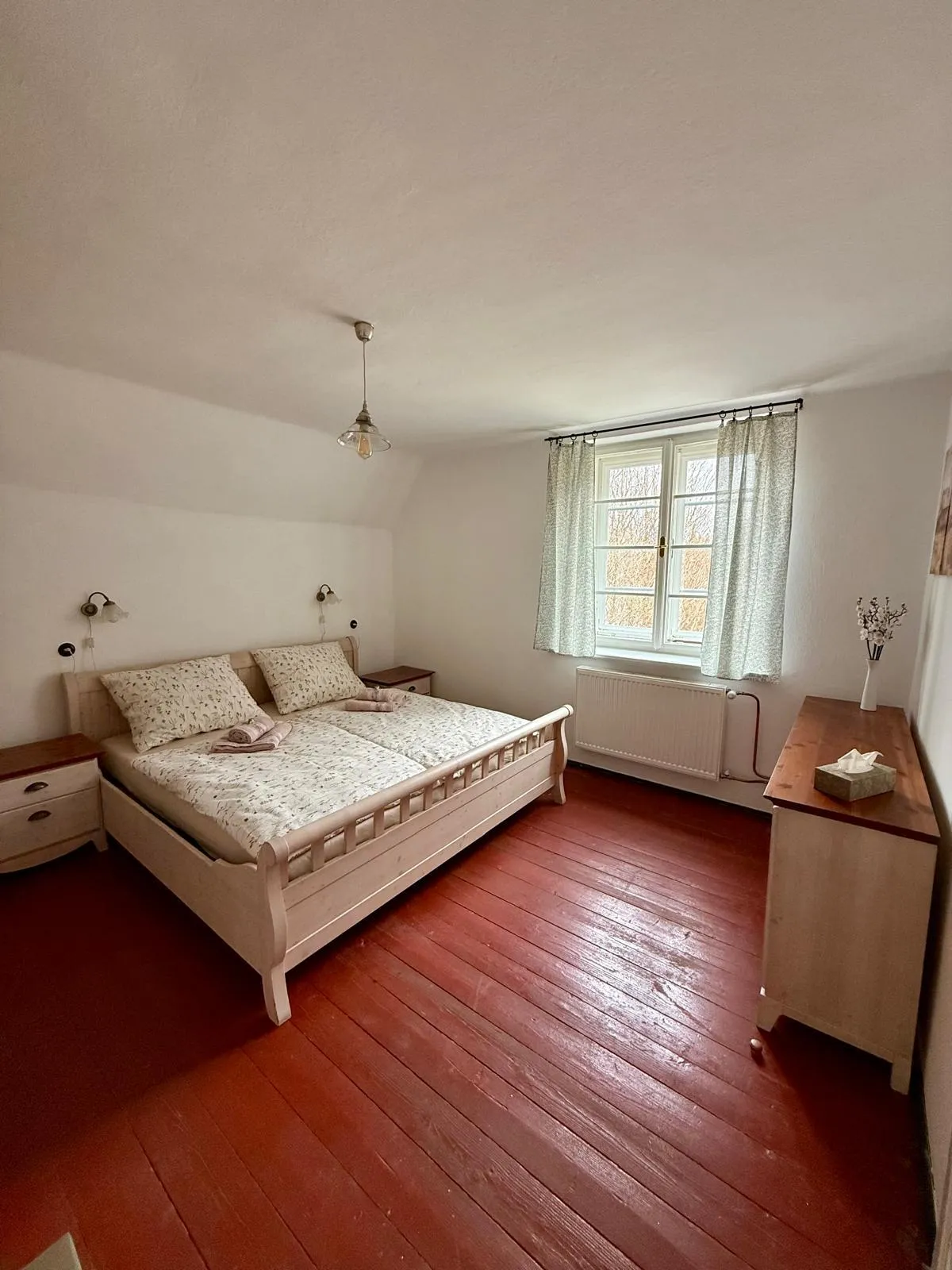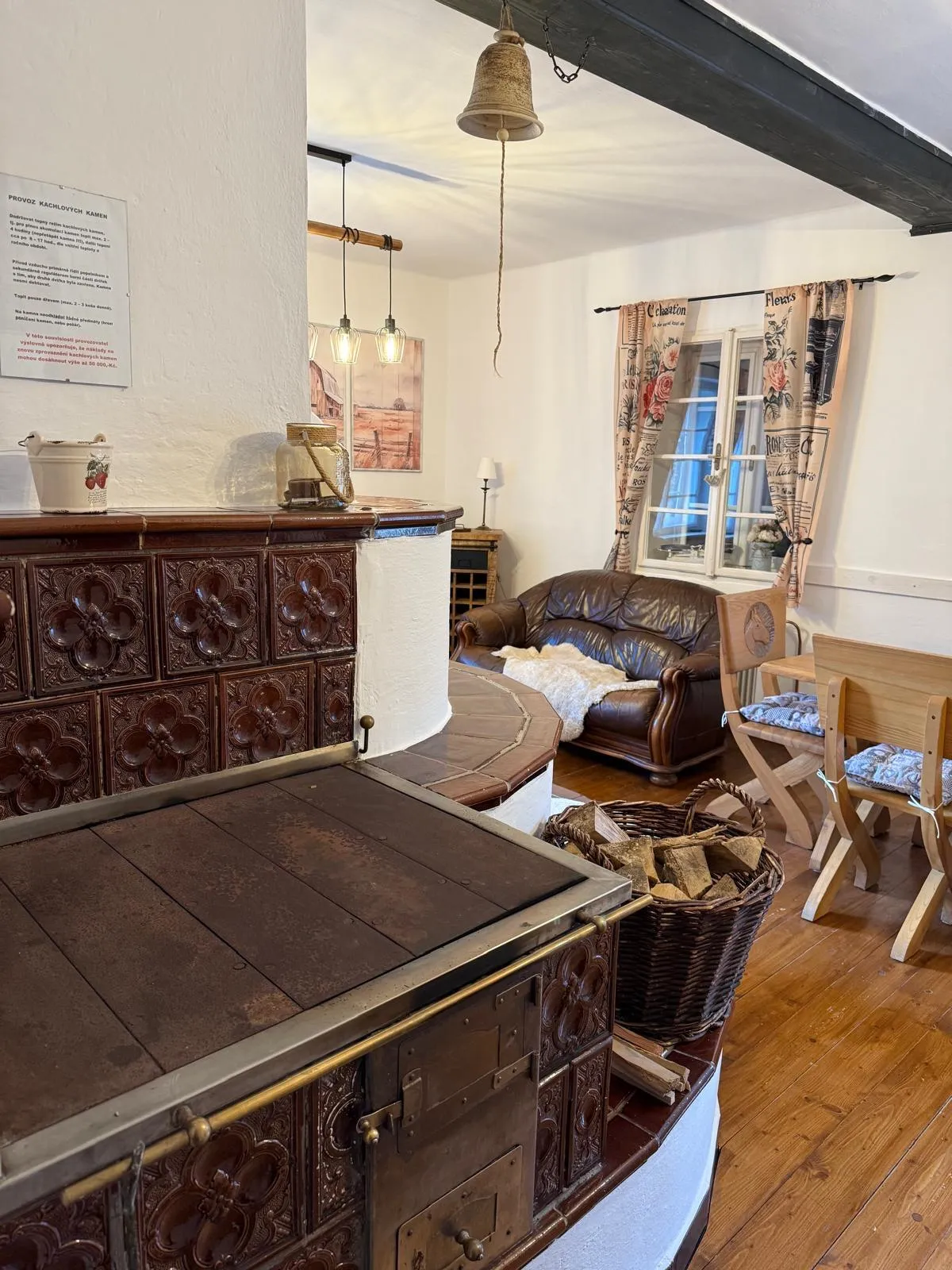 K dispozici je samostatné WC a moderní koupelna se sprchovým koutem. Vytápění je zajištěno centrálně a kachlovými kamny pro dokonalou atmosféru.