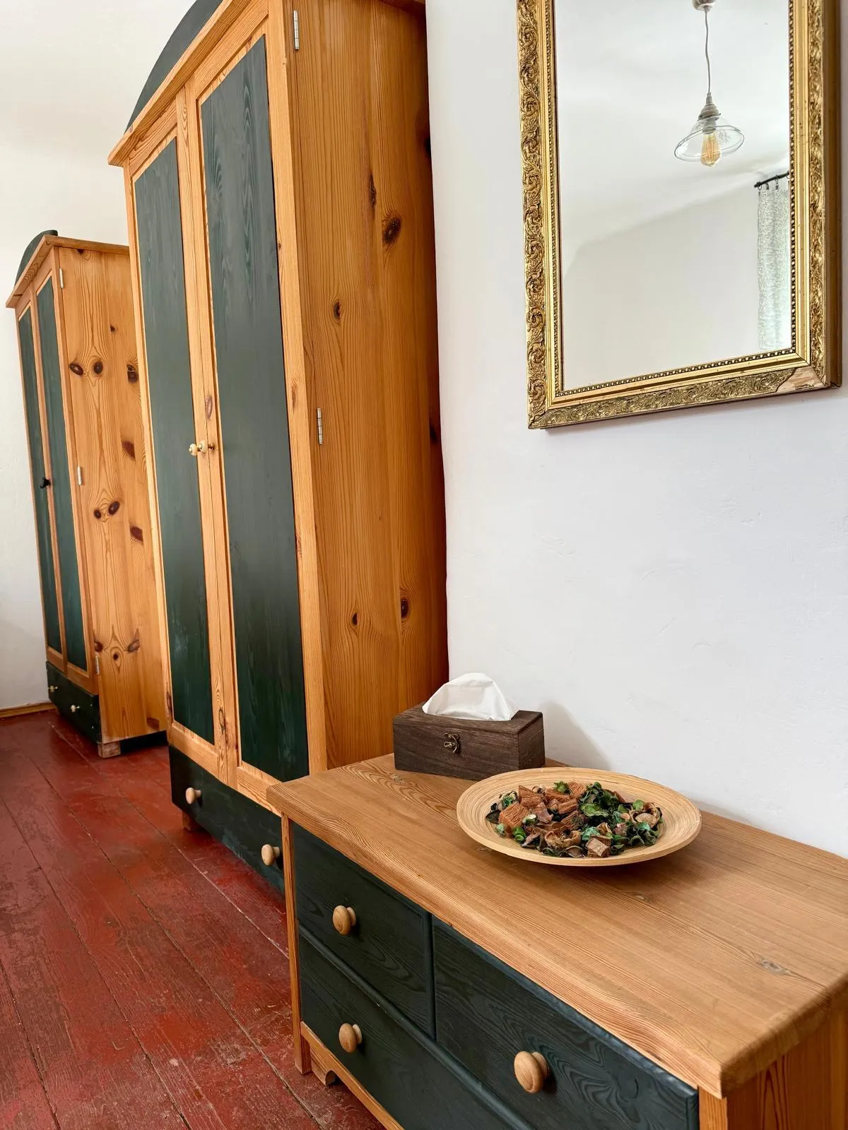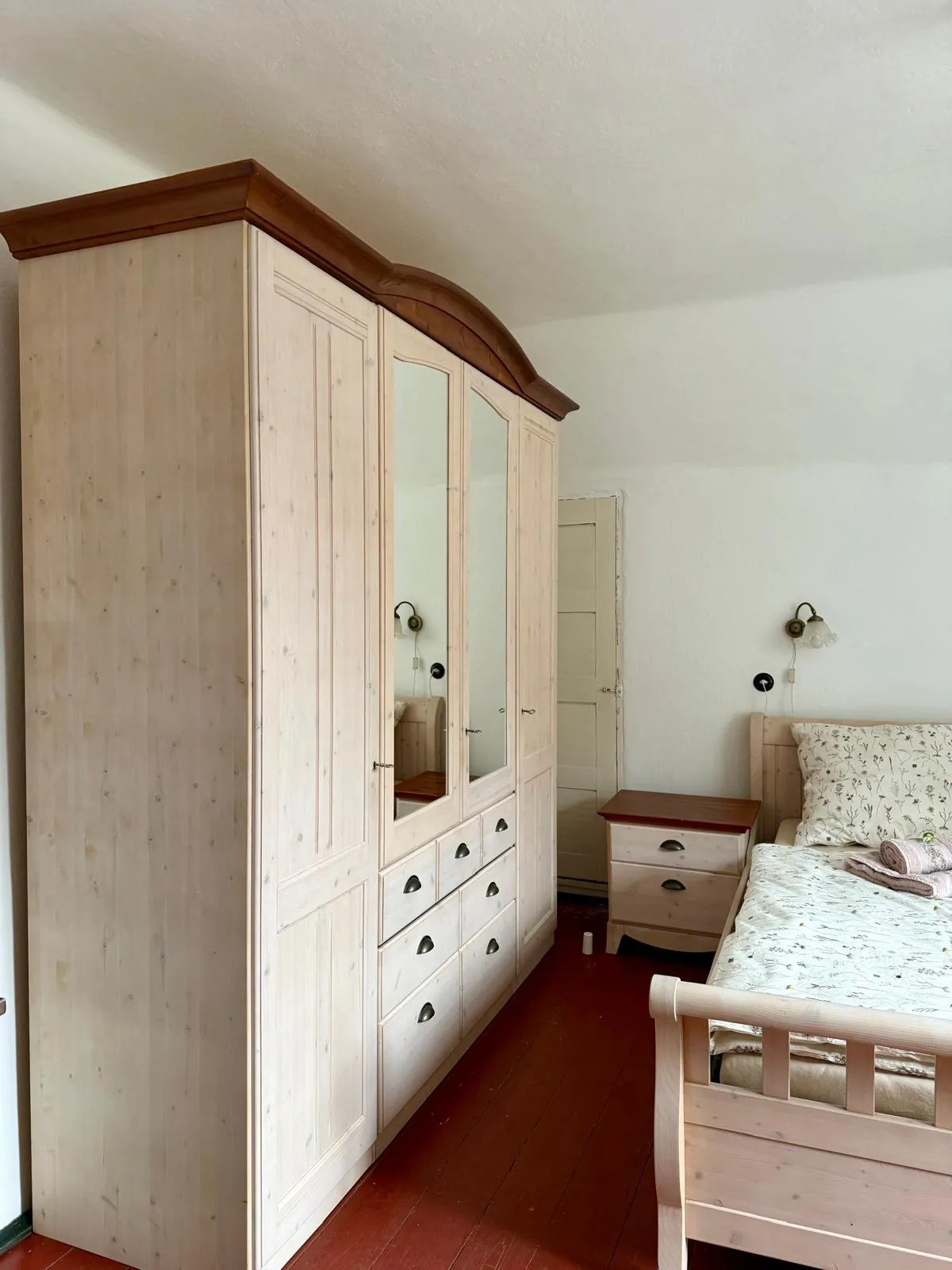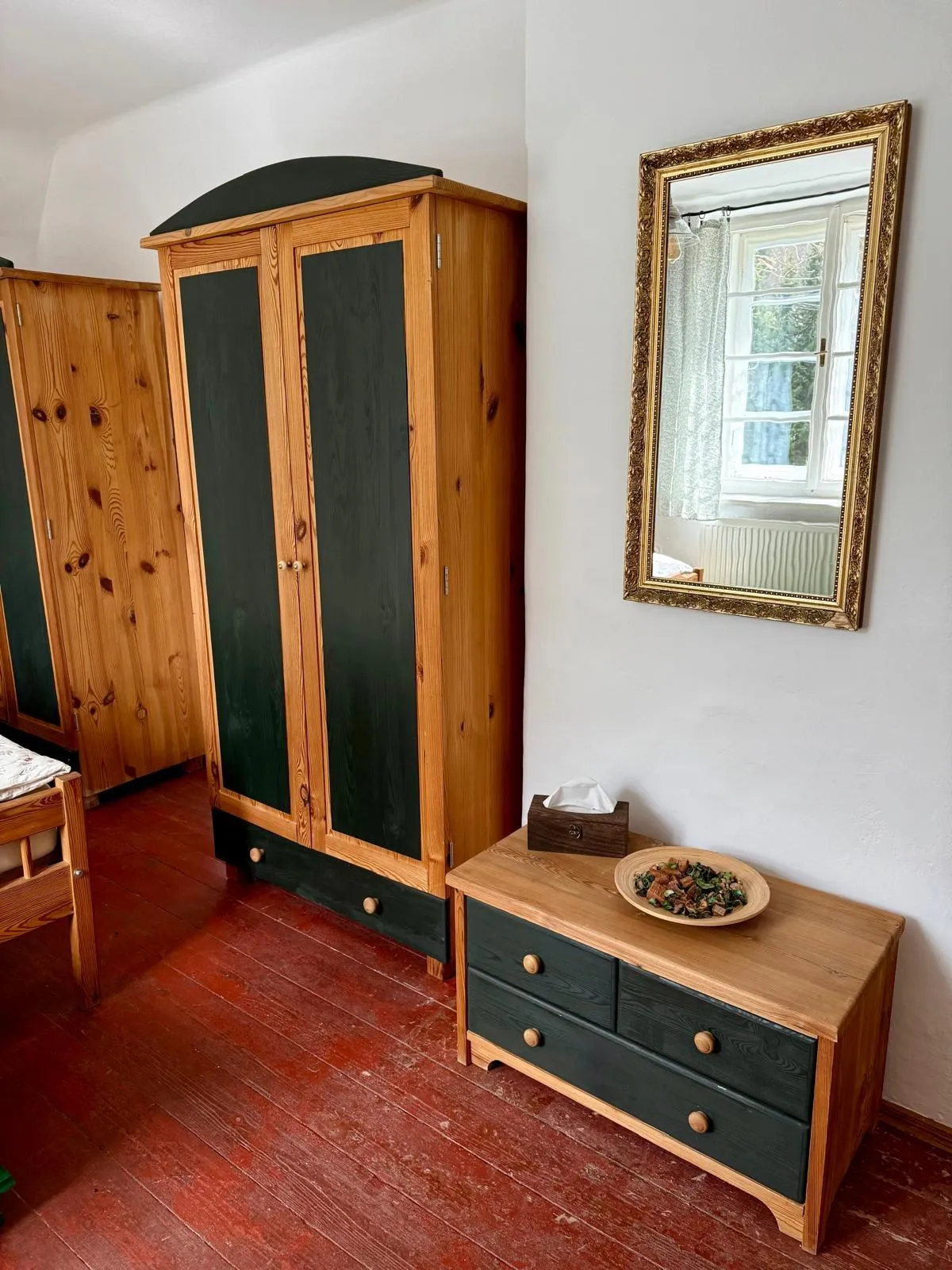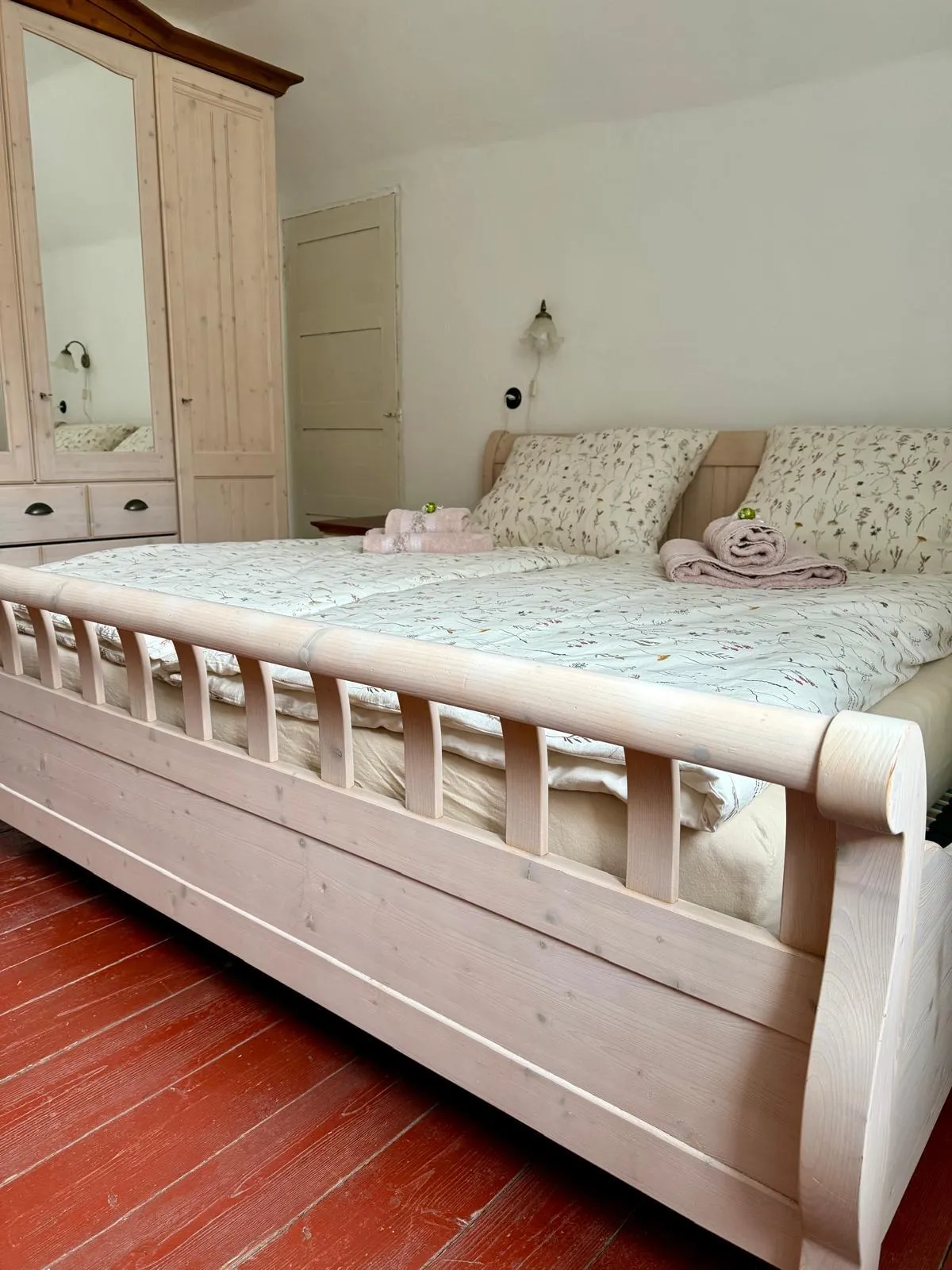 K dispozici je samostatné WC a moderní koupelna se sprchovým koutem. Vytápění je zajištěno centrálně a kachlovými kamny pro dokonalou atmosféru.
